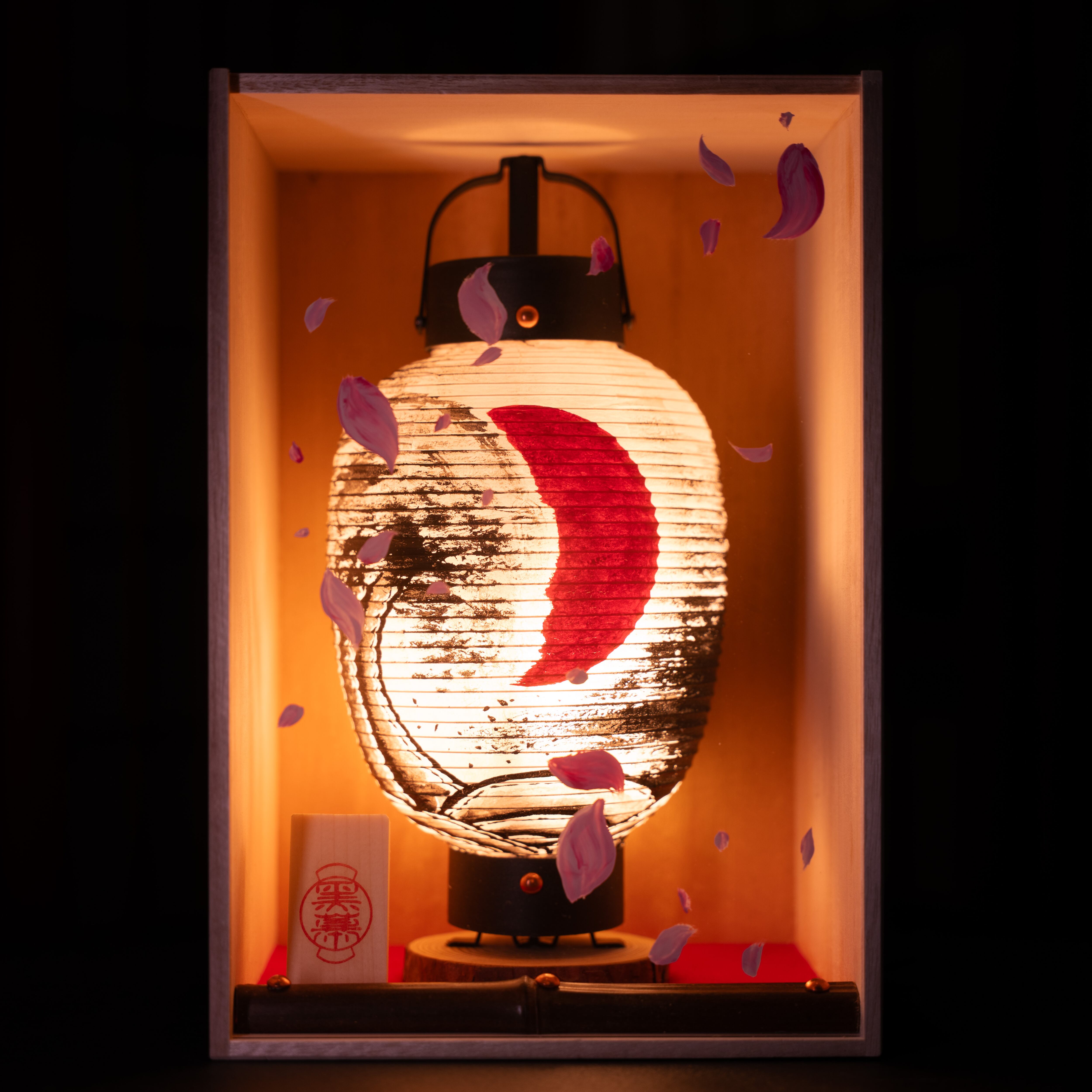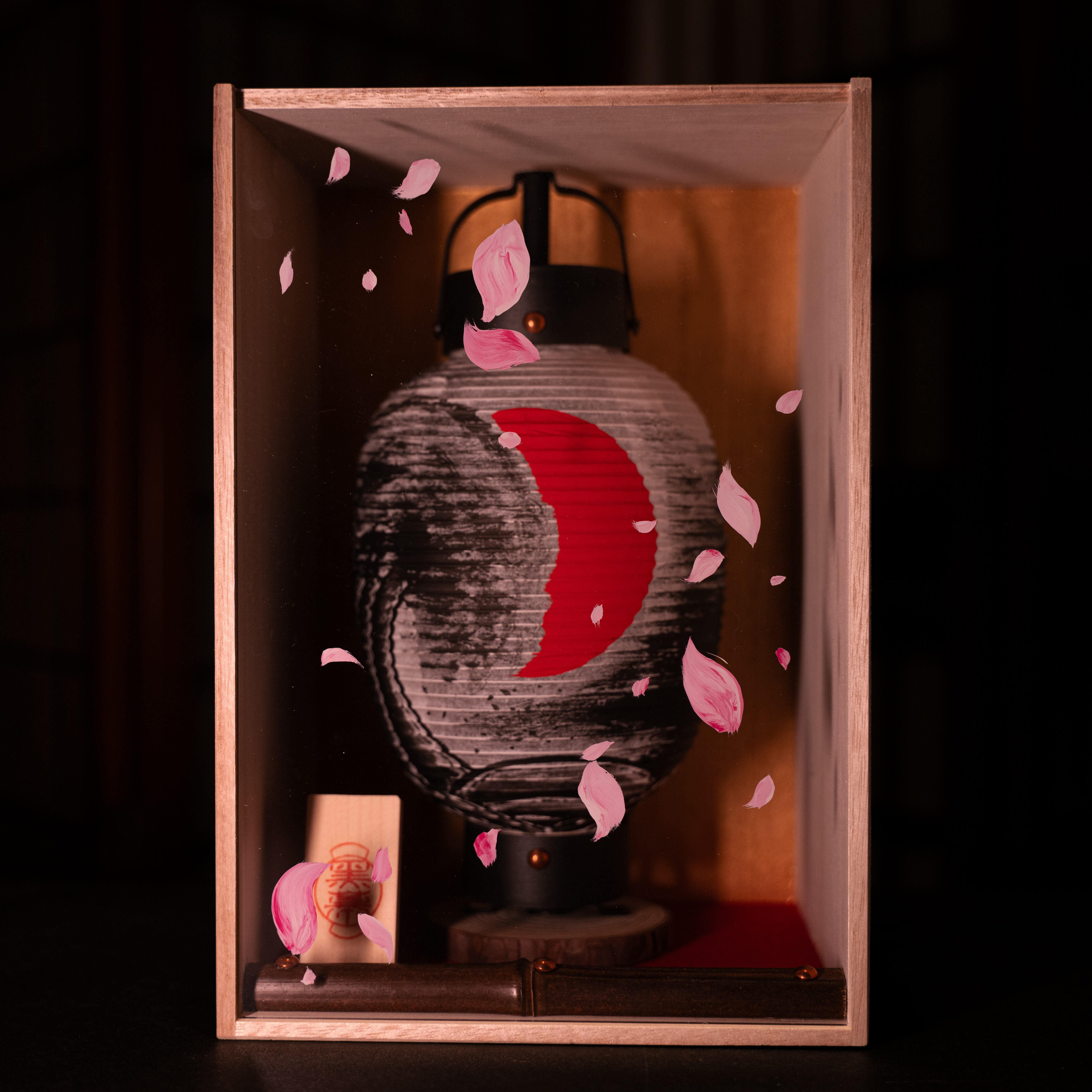 日本の弥栄を願い、表面のアクリル板には桜吹雪を描きより奥行き立体感を演出しております。